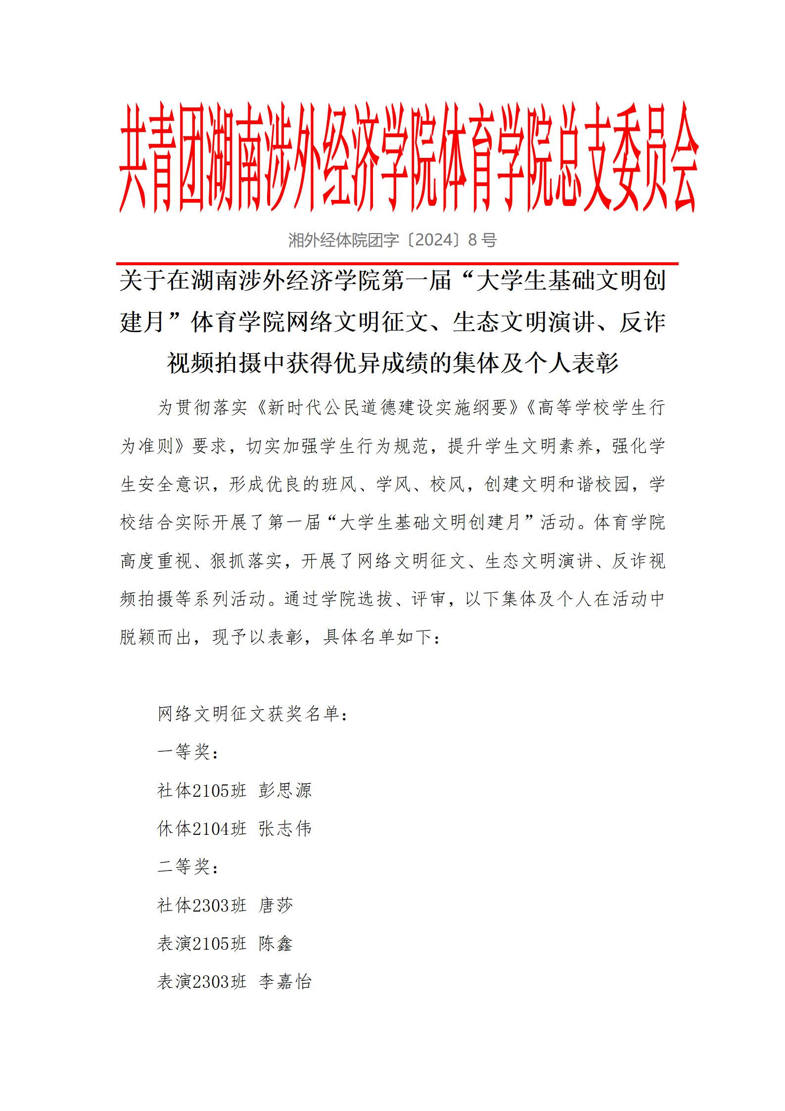 下一条:关于在湖南涉外经济学院第一届“大学生基础文明创建月”中表现优异的个人及集体的表彰通知